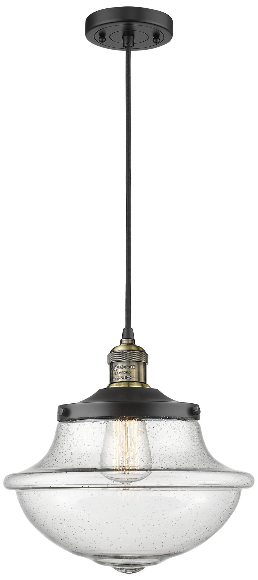 Franklin Oxford 12" Black Brass Corded Mini Pendant w/ Seedy Shade