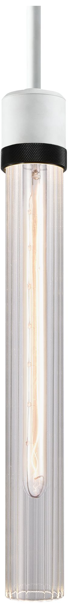 Zigrina 3" E26 Cylindrical Pendant, 18" Fluted Glass White &