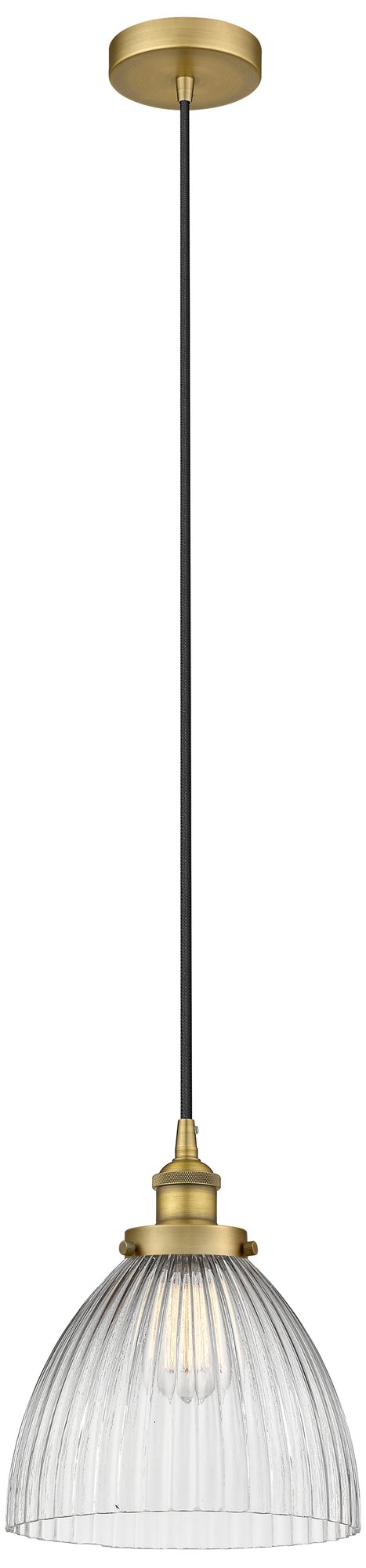 Seneca Falls 10" Brushed Brass Mini Pendant w/ Clear Halophane Shade