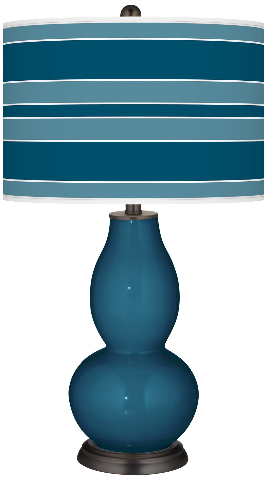 Color Plus Double Gourd 29 1/2" Bold Stripe Oceanside Blue Table Lamp
