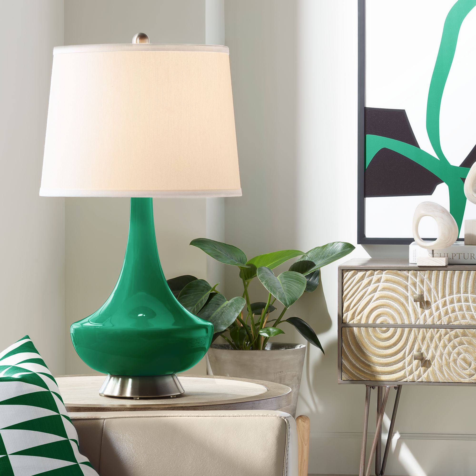Color Plus Gillan 28" Modern Glass Greens Table Lamp