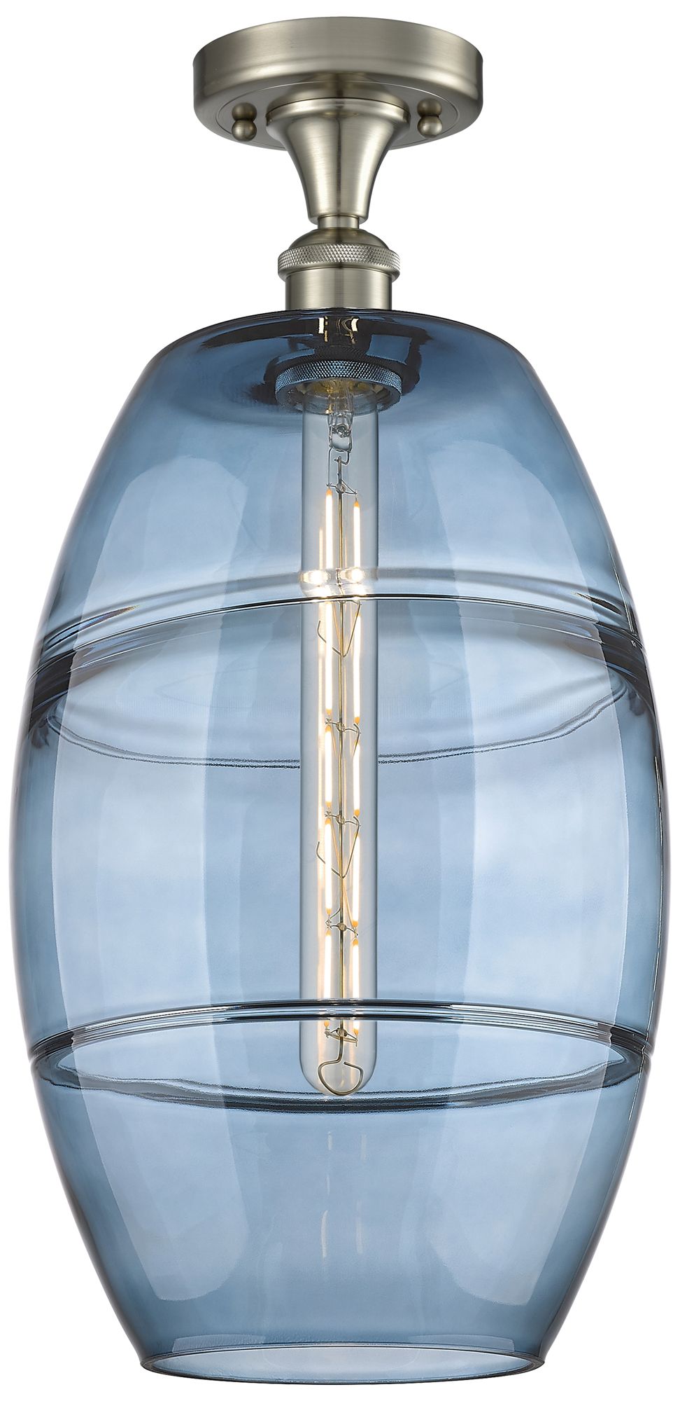 Ballston Vaz 10"W Satin Nickel Semi-Flush Mount w/ Princess Blue Shade
