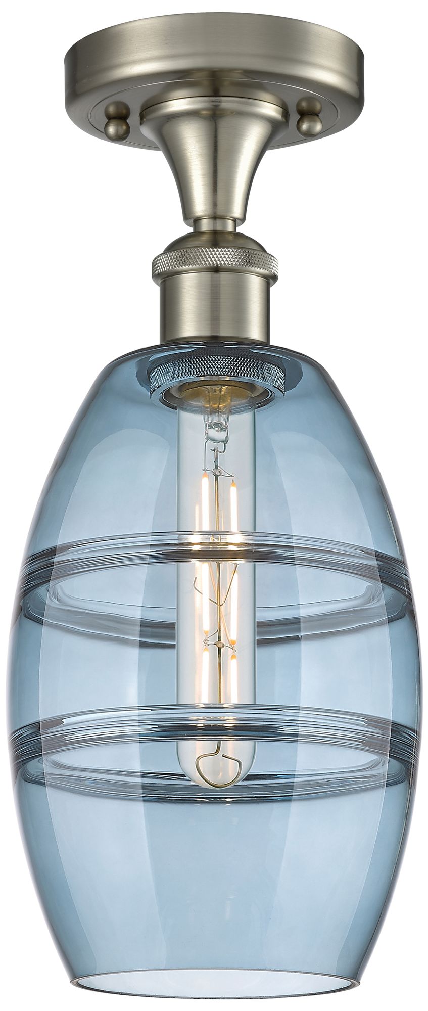 Ballston Vaz 5.88"W Satin Nickel Semi-Flush Mount w/ Princess Blue Sha
