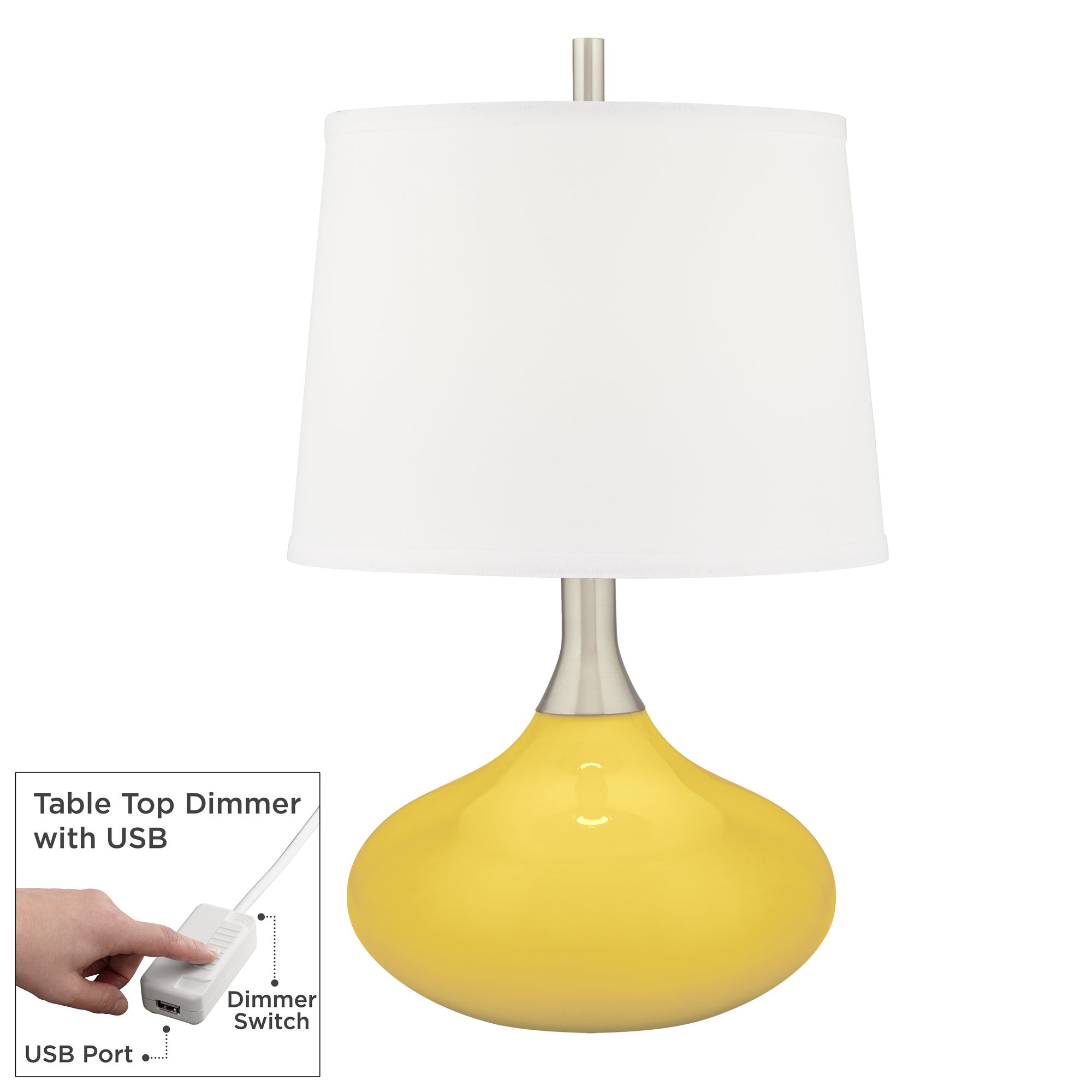 Color Plus Felix 24" Lemon Zest Yellow Table Lamp with USB Dimmer