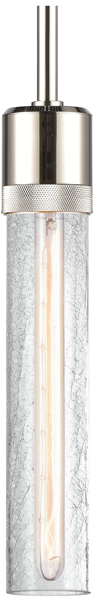 Zigrina 3" E26 Cylindrical Pendant, 12" Crackled Glass and Nickel