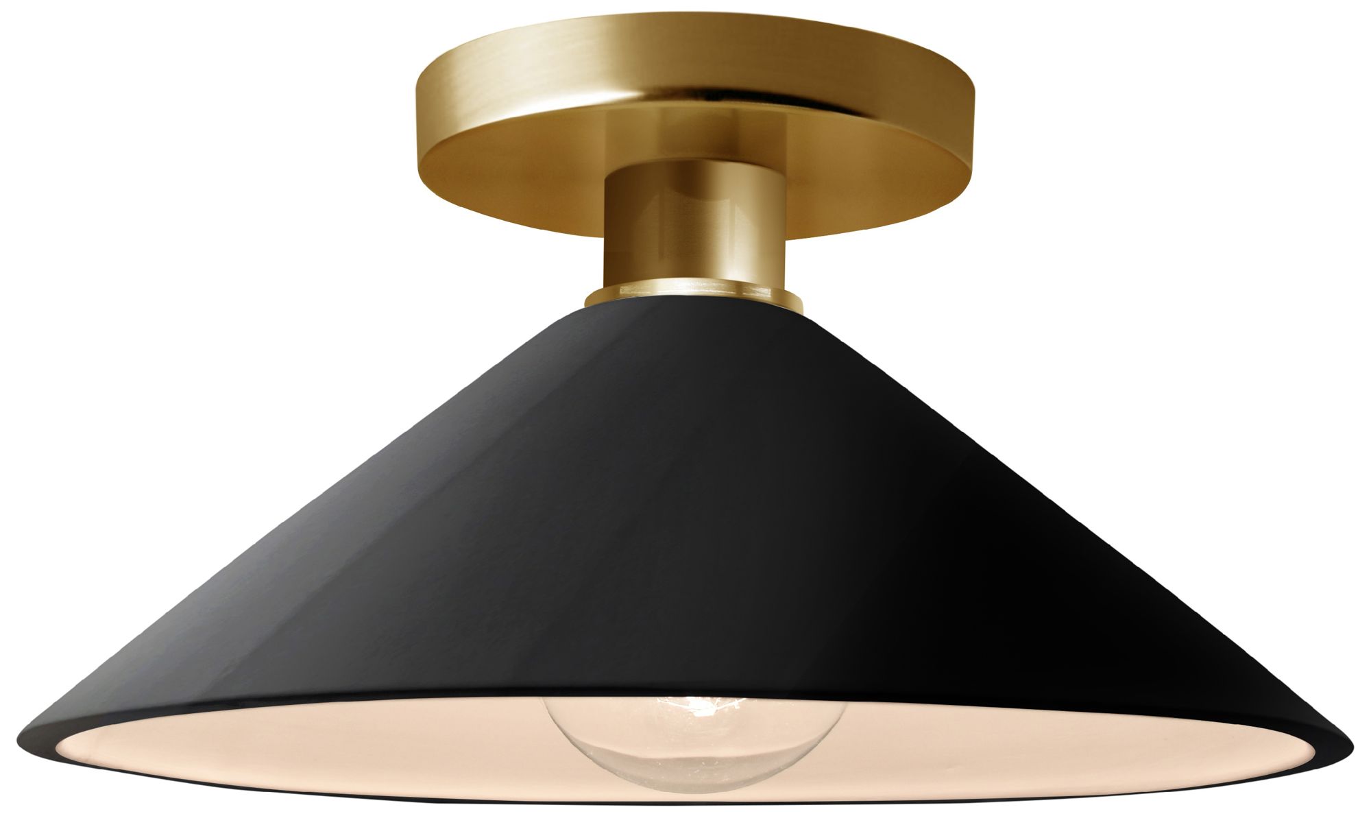 Radiance 11.75"W Gloss Black Frame Polished Brass Metal Flare Semi.Flu