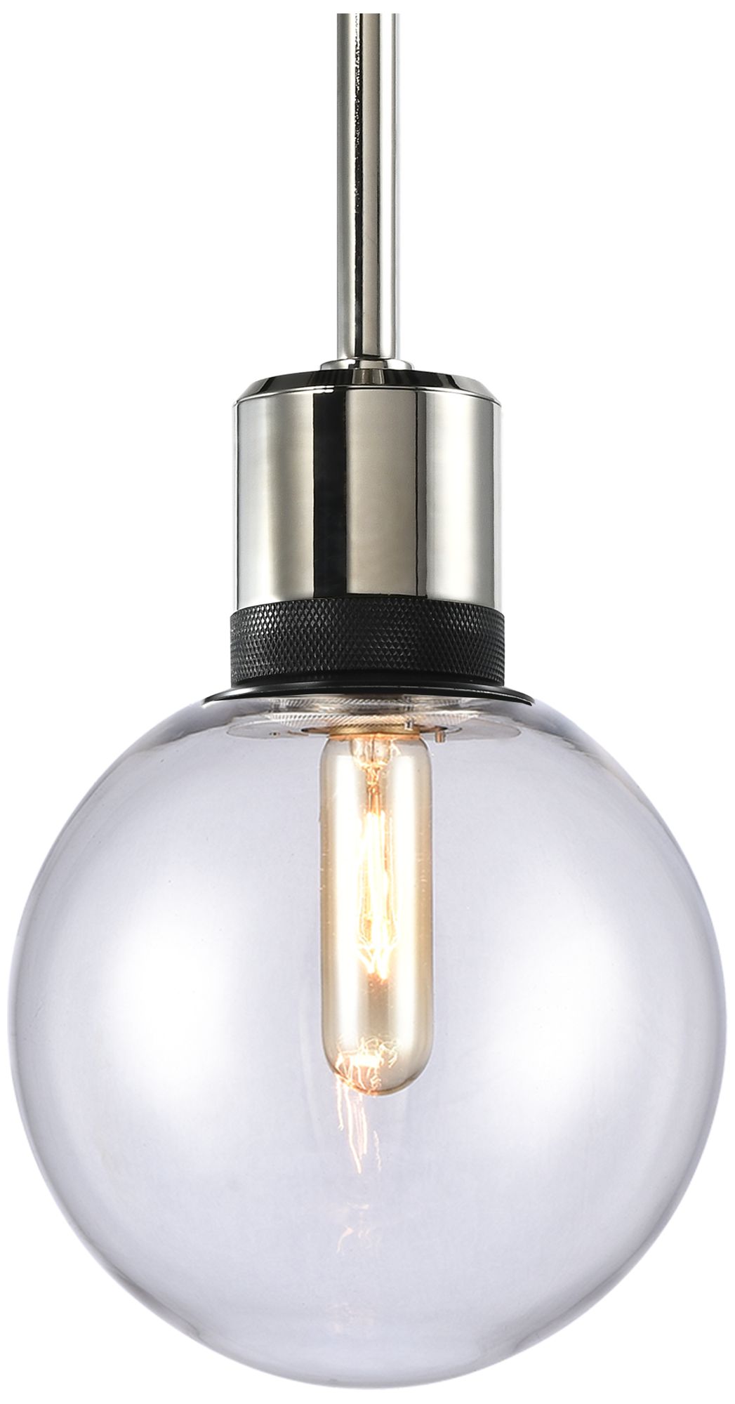 Zigrina 8" E26 Clear Globe Glass Pendant and Nickel with Black Metal F