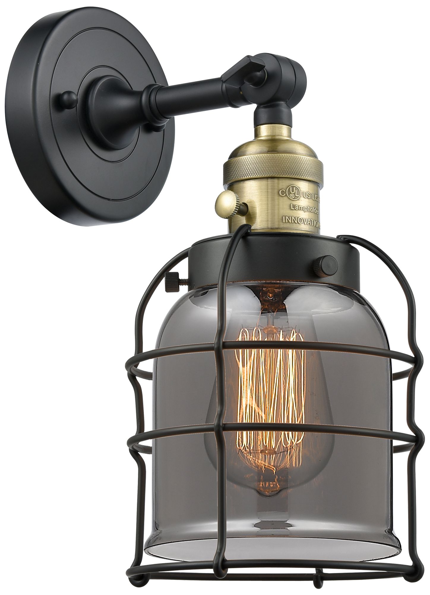 Bell Cage 6" Black Antique Brass Sconce w/ Plated Smoke Shade