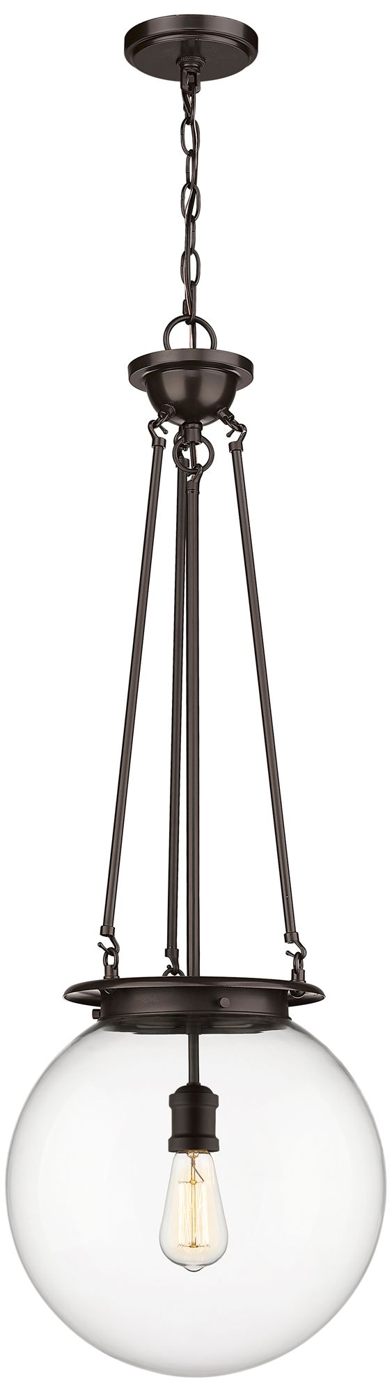 Beacon 14" Wide Oiled Brass Pendant With Clear Glass Shade