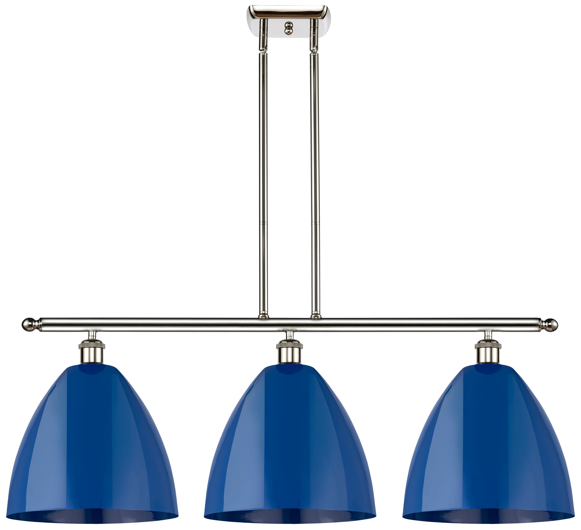 Plymouth Dome 38.5"W 3 Light Polished Nickel Stem Island Light Blue Sh