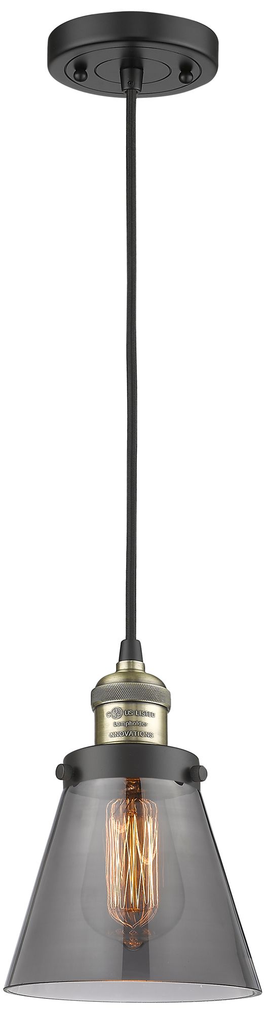 Franklin Restoration Cone 6" Black Brass Corded Mini Pendant w/ Smoke