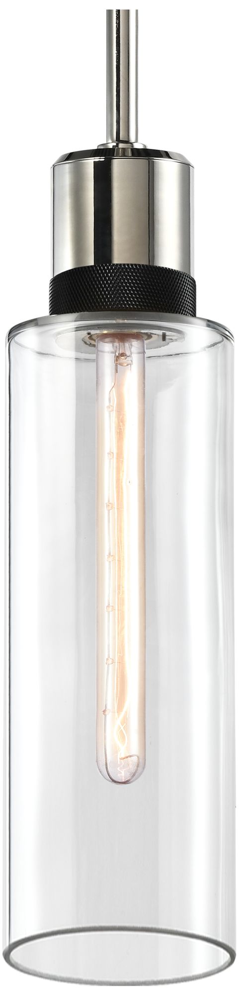Zigrina 6" E26 Cylindrical Pendant, 18" Clear Glass, Nickel &