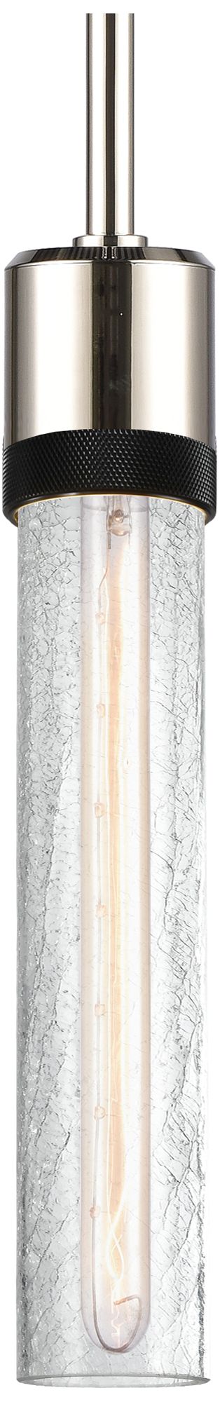 Zigrina 3" E26 Cylindrical Pendant 12" Crackle Glass, Nickel &