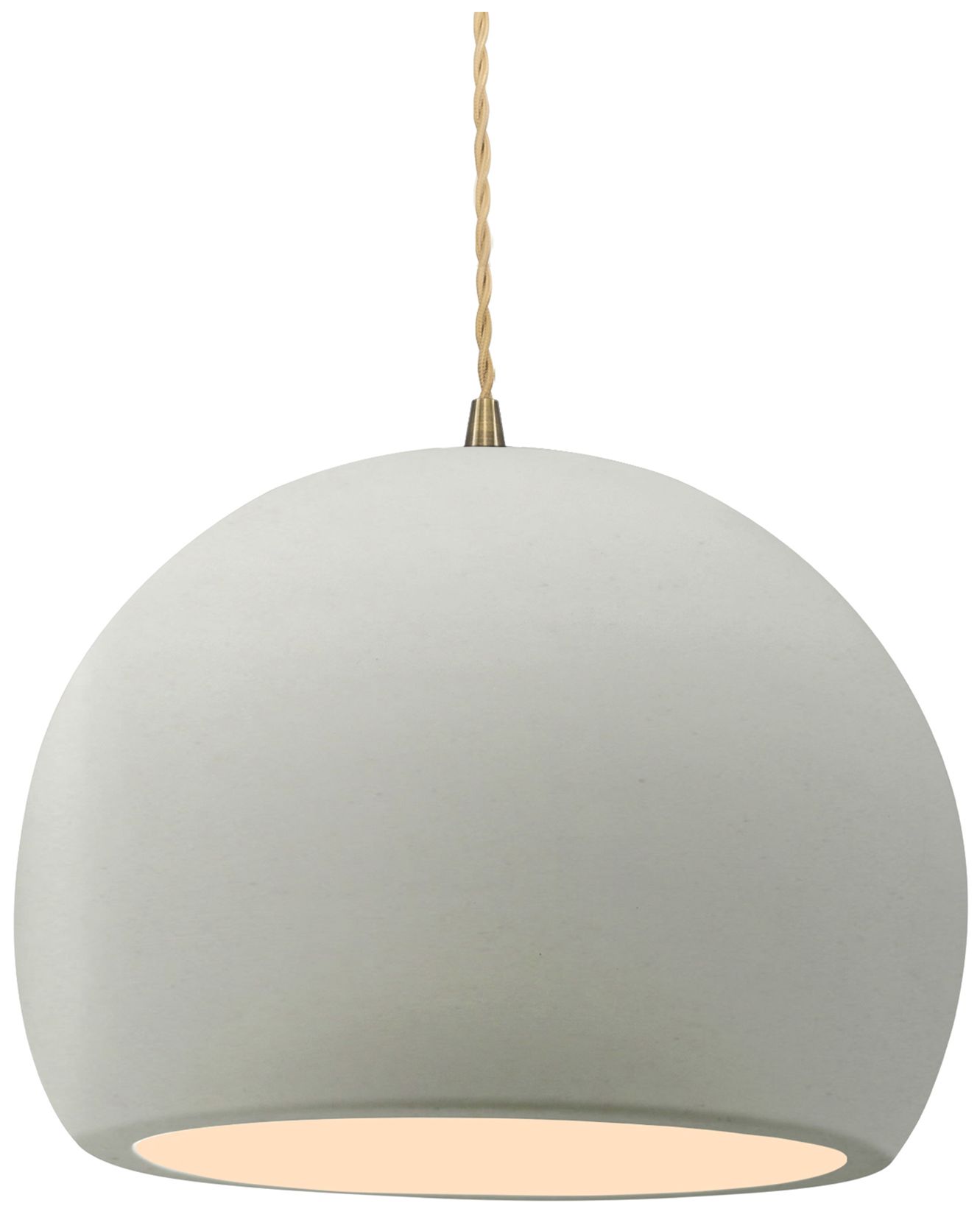 12.25"W Matte White Frame Antique Brass Large Globe Twisted Cord Penda