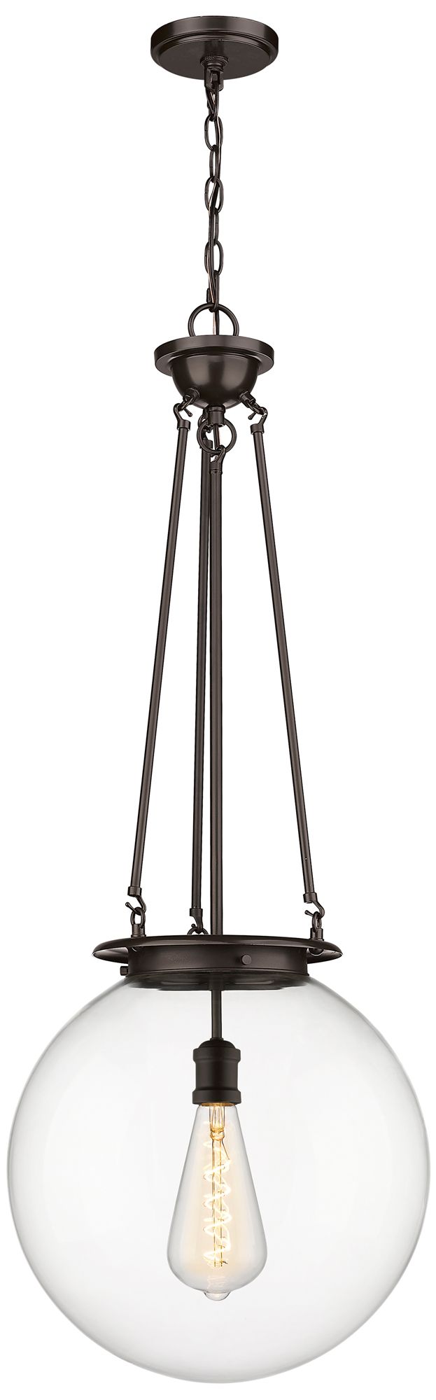 Beacon 15.75" Wide Oiled Brass Pendant With Clear Glass Shade