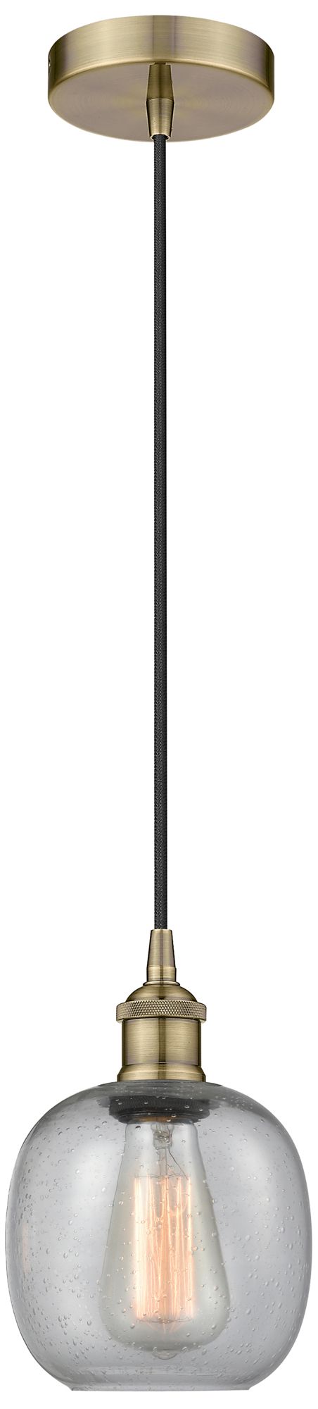 Edison Belfast 6" Antique Brass Cord Hung Mini Pendant w/ Seedy Shade