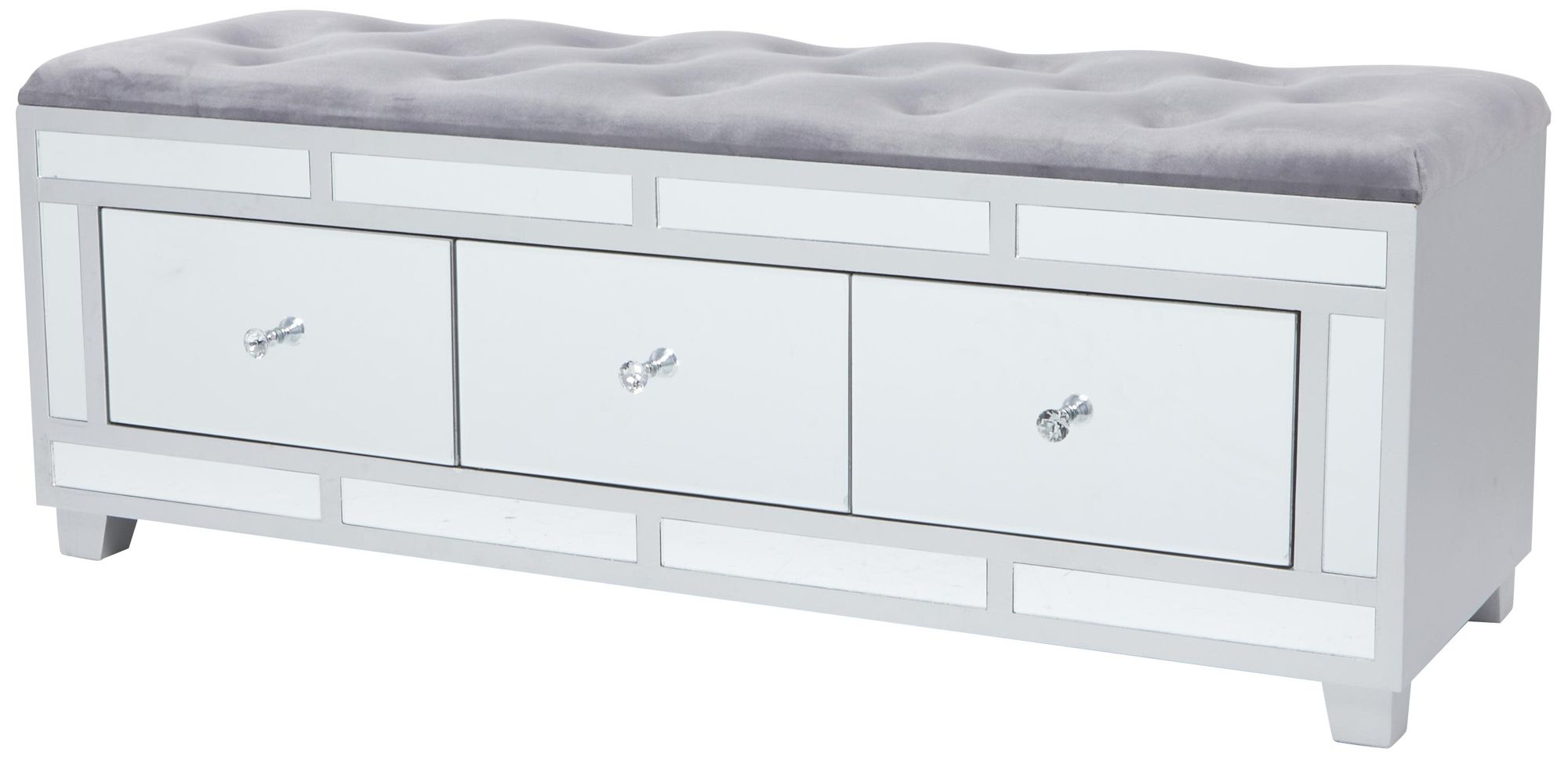 Gray Wood Glam Bench, 47" x 16" x 18"