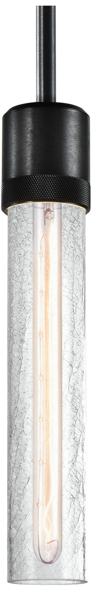 Zigrina 3" E26 Cylindrical Pendant, 12" Crackled Glass and Black
