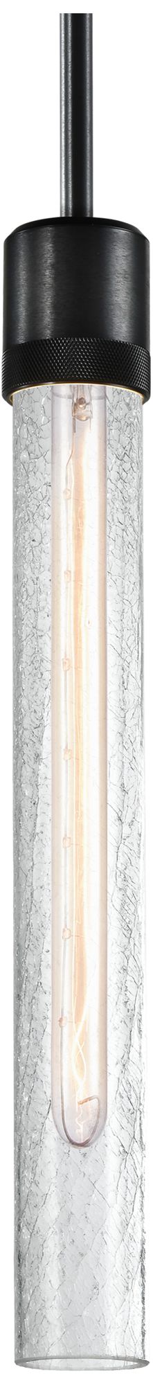 Zigrina 3" E26 Cylindrical Pendant, 18" Crackled Glass and Black