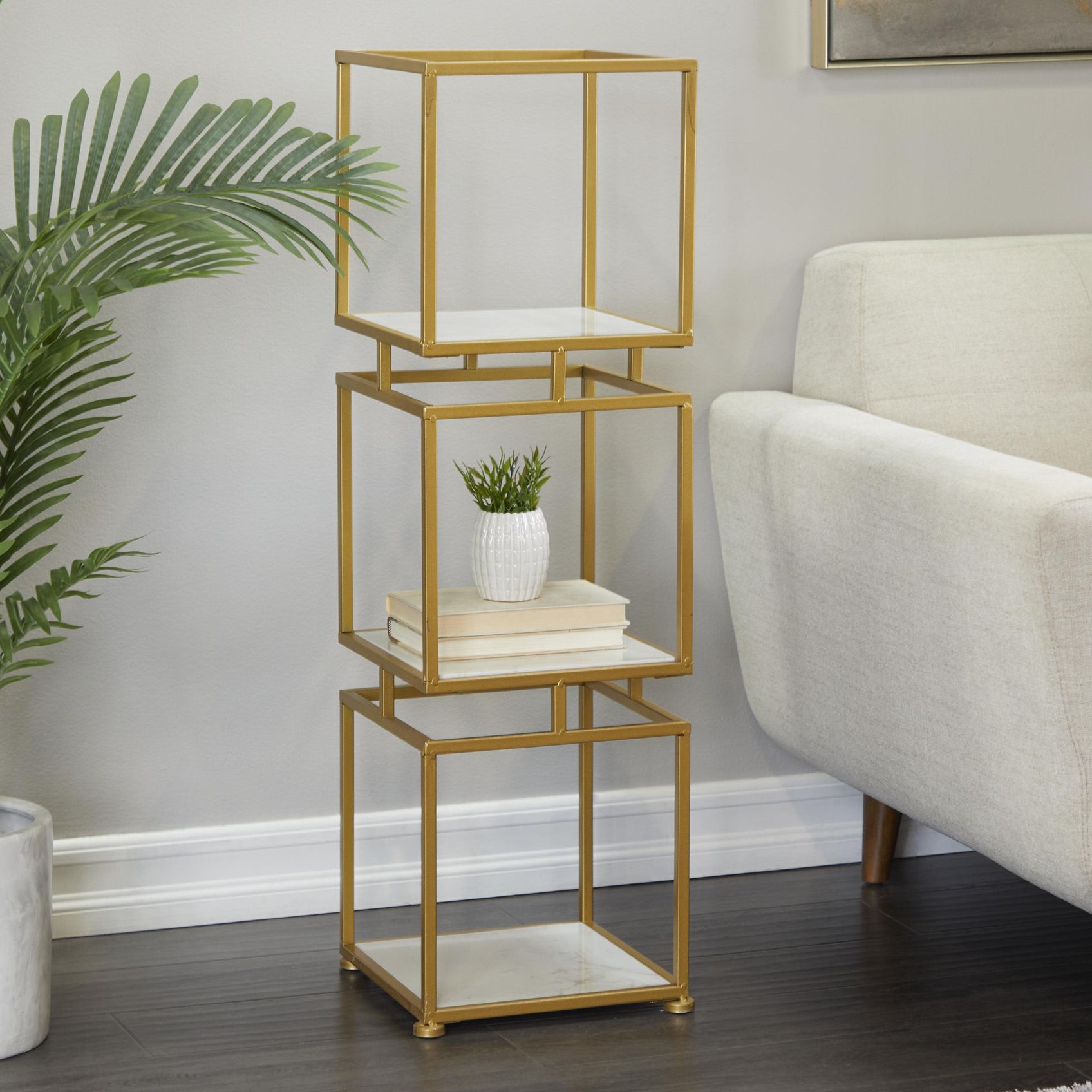 Gold Metal Glam Shelving Unit, 12" x 12" x 39"