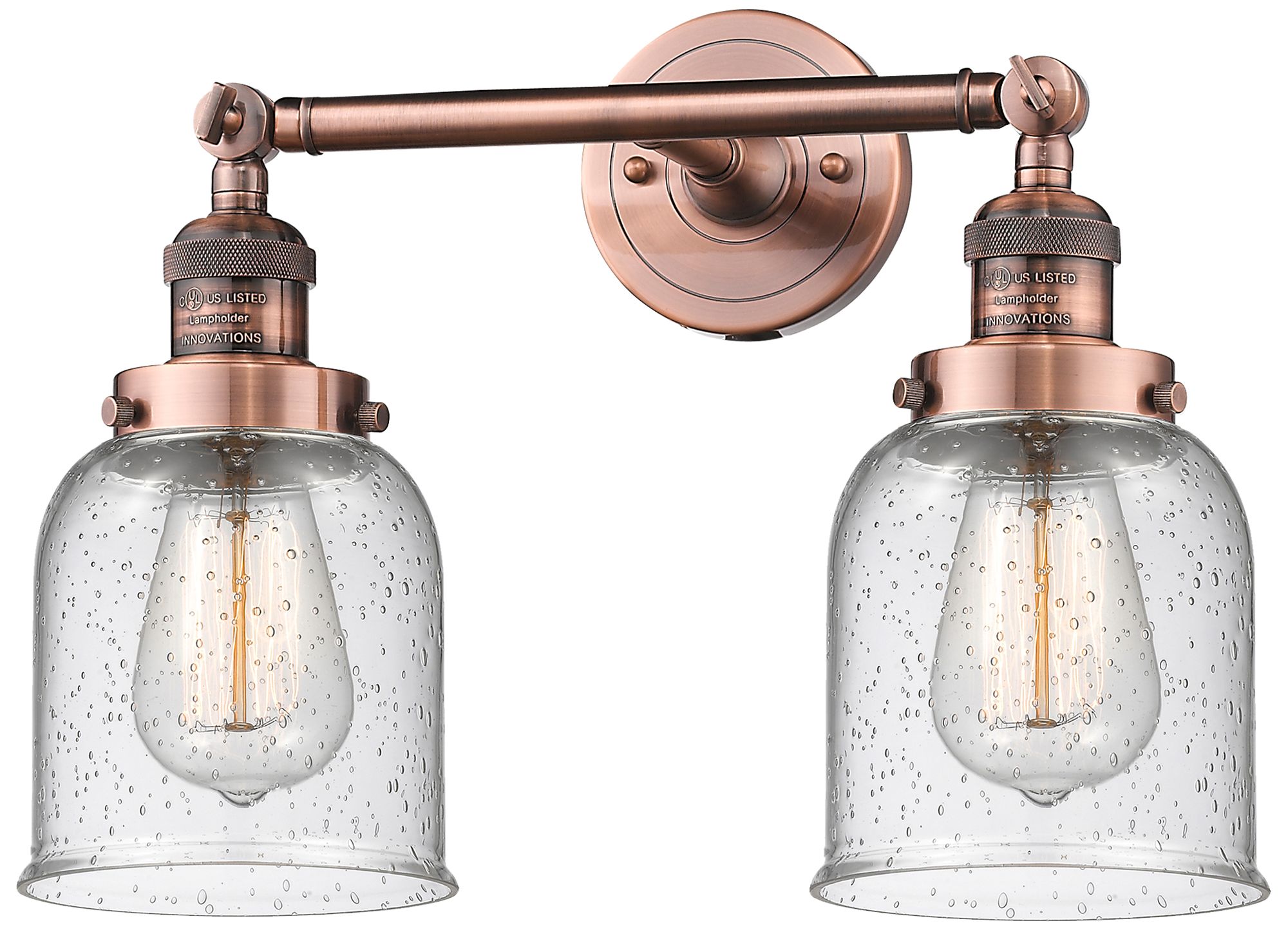 Bell 16" Wide 2 Light Copper Tiltable Bath Vanity Light w/ Seedy Shade