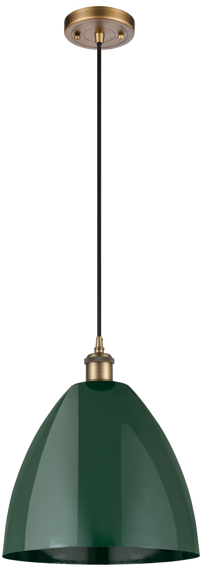 Ballston Plymouth Dome 12"W Brushed Brass Corded Mini Pendant Green Sh