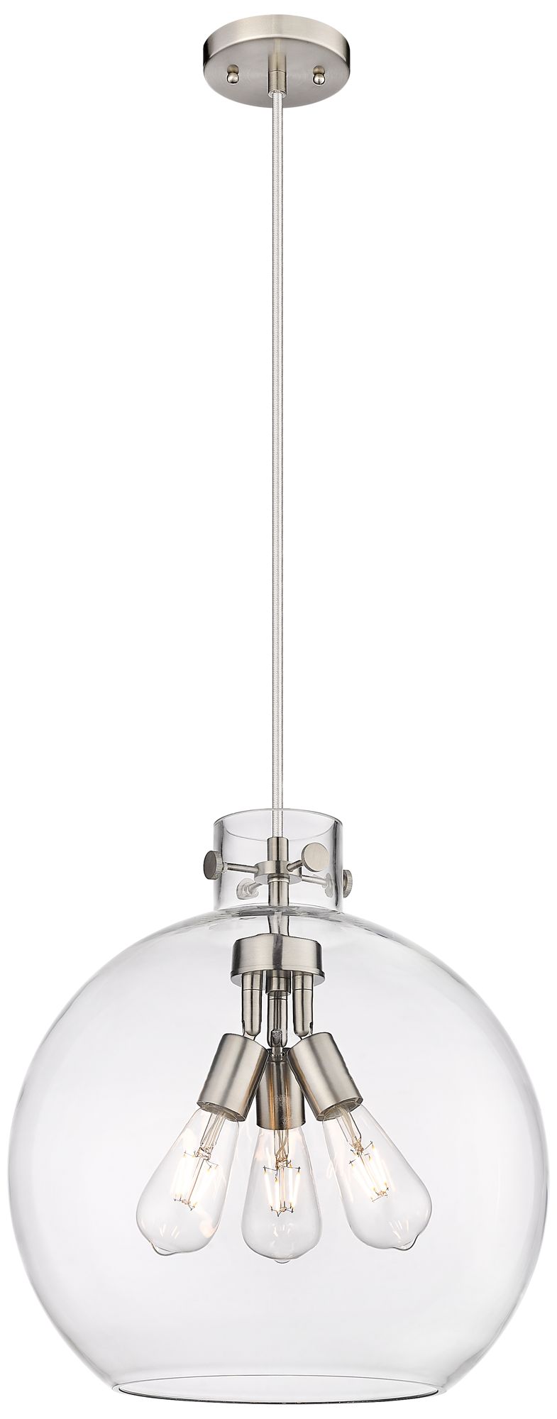 Newton Sphere 16"W 3 Light Cord Hung Satin Nickel Pendant w/ Clear Sha