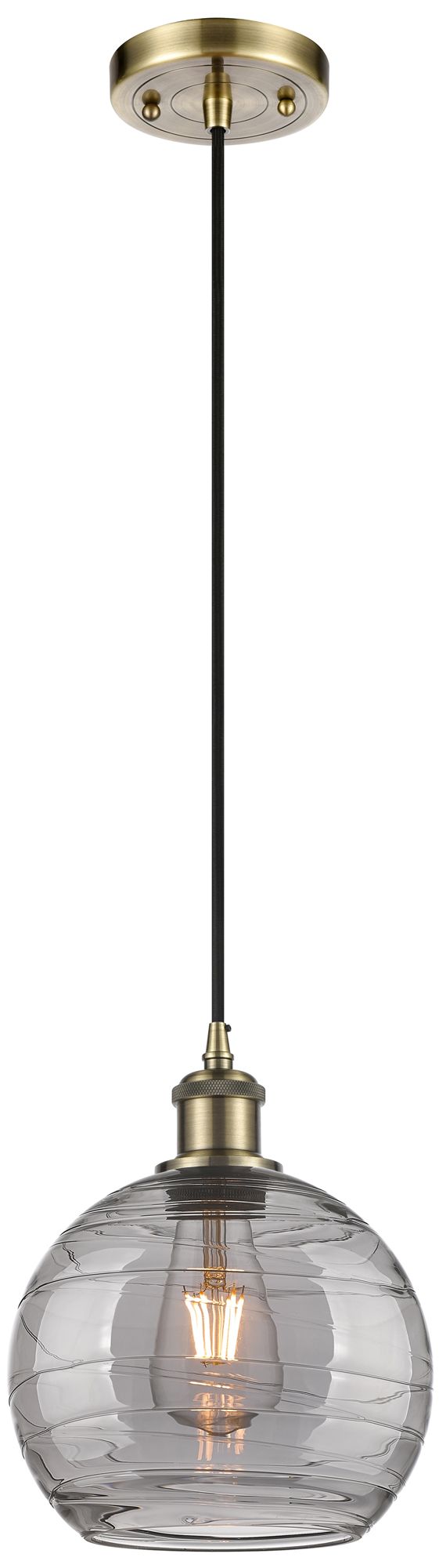 Ballston Athens 8"W Antique Brass Corded Mini Pendant w/ Smoke Swirl S