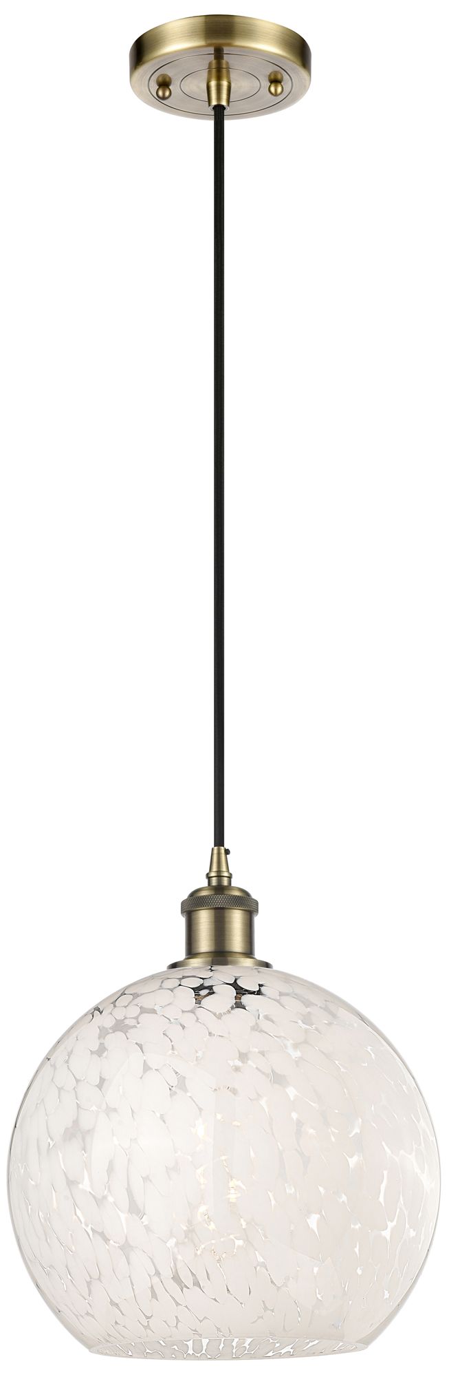 Ballston 10"W Antique Brass Corded Mini Pendant w/ White Mouchette Sha