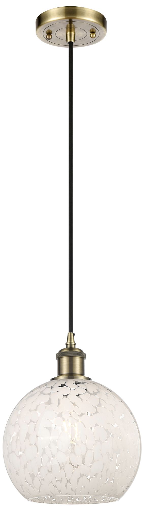 Ballston 8" Wide Antique Brass Corded Mini Pendant w/ White Mouchette