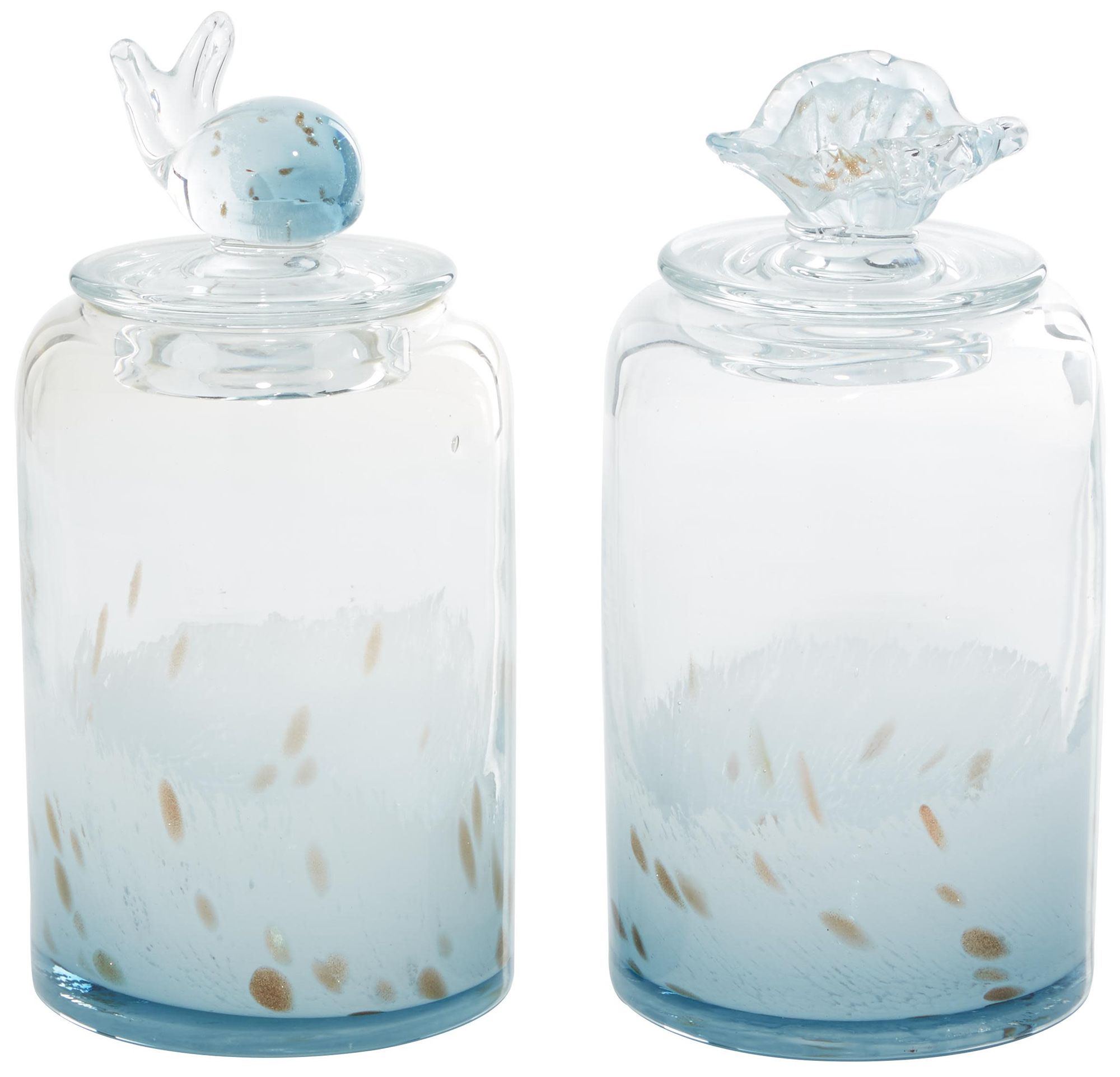 Blue Glass Contemporary Decorative Jars, S/2 5"W, 9"H