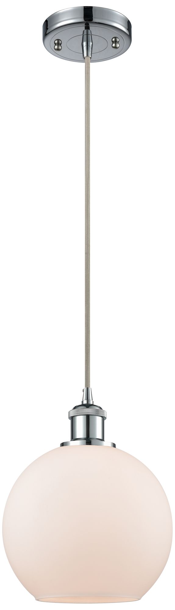 Ballston Athens 8"W Cord Hung Chrome Mini Pendant w/ White Shade