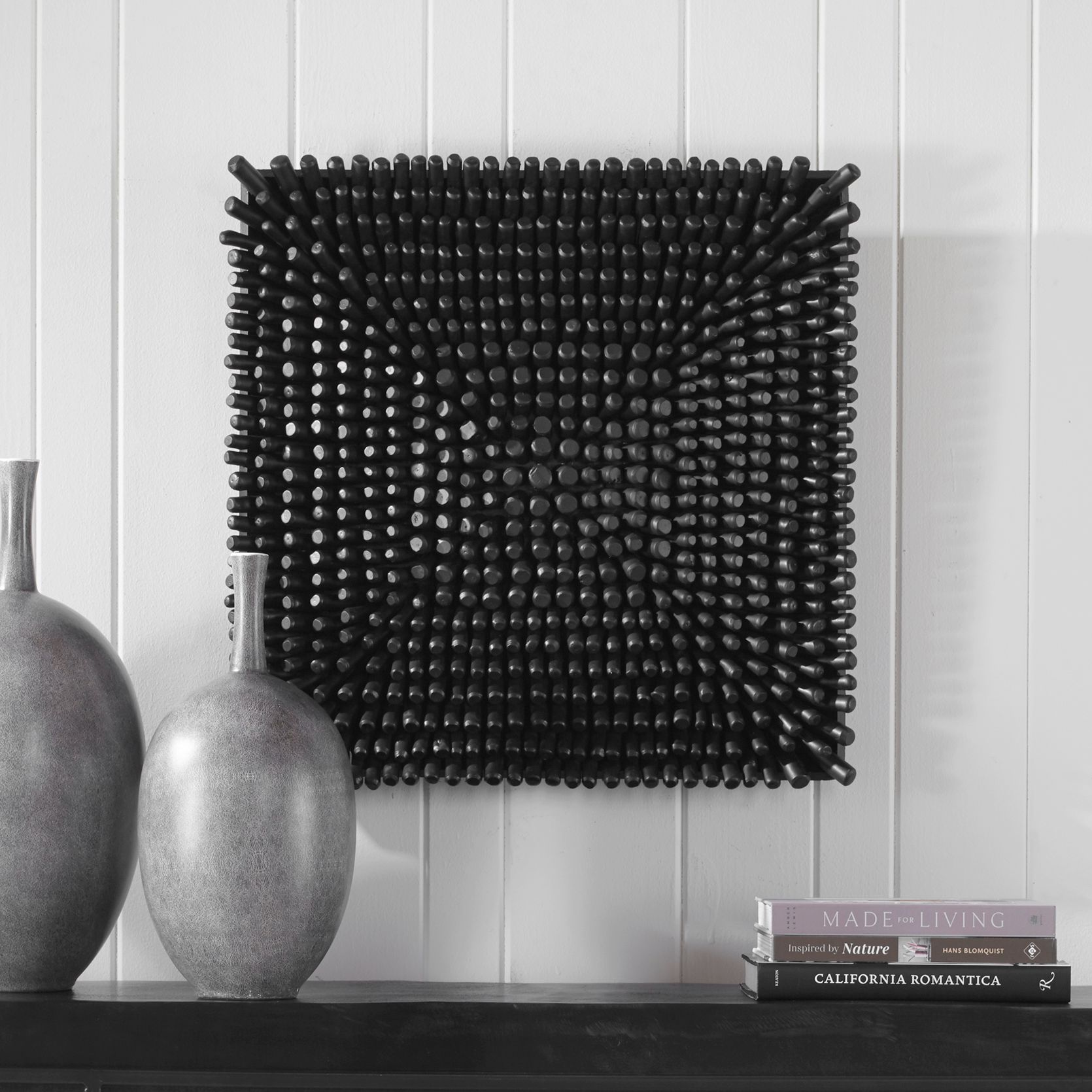 Uttermost Portside 24" Square Satin Black Wood Wall Art
