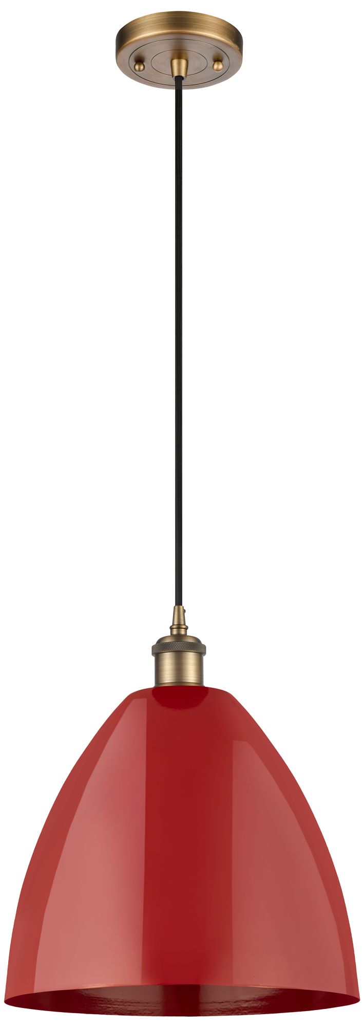 Ballston Plymouth Dome 12"W Brushed Brass Corded Mini Pendant w/ Red S
