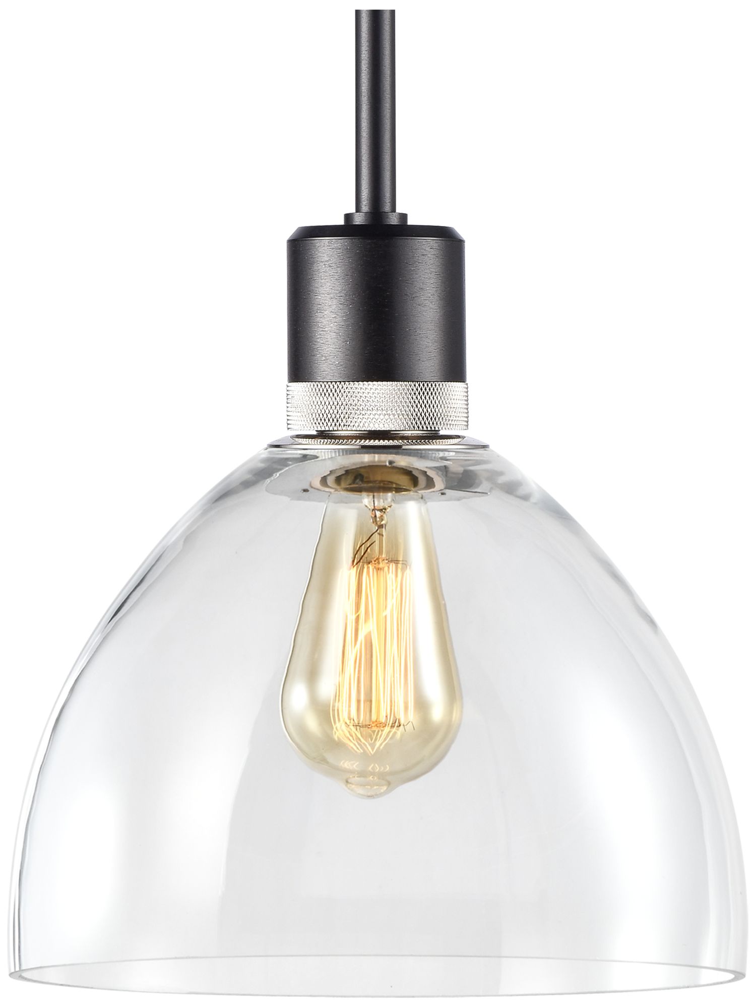 Zigrina 10" E26 Clear Dome Glass Pendant and Black with Nickel Metal F