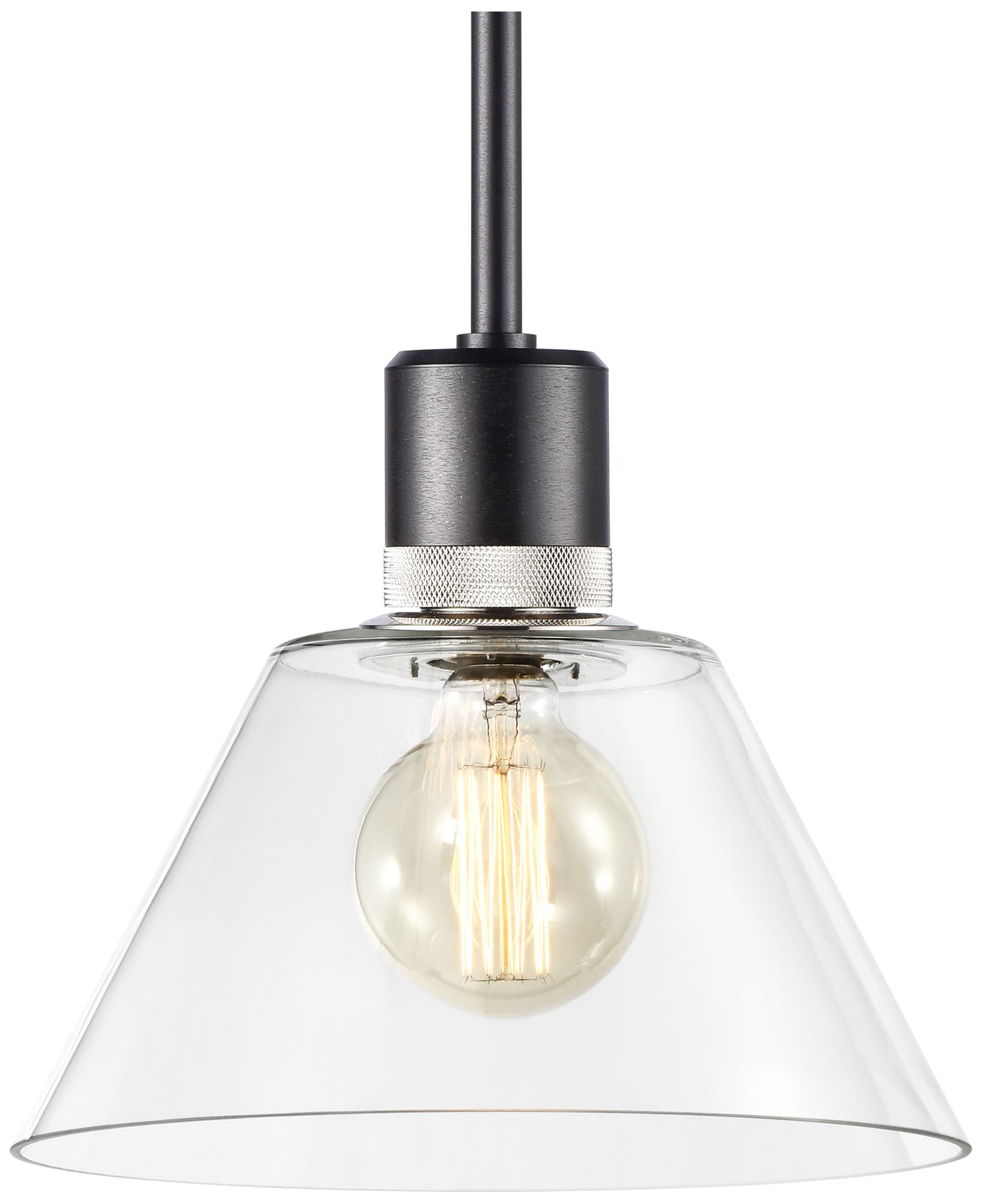 Zigrina 12" E26 Clear Cone Glass Pendant and Black with Nickel Metal F