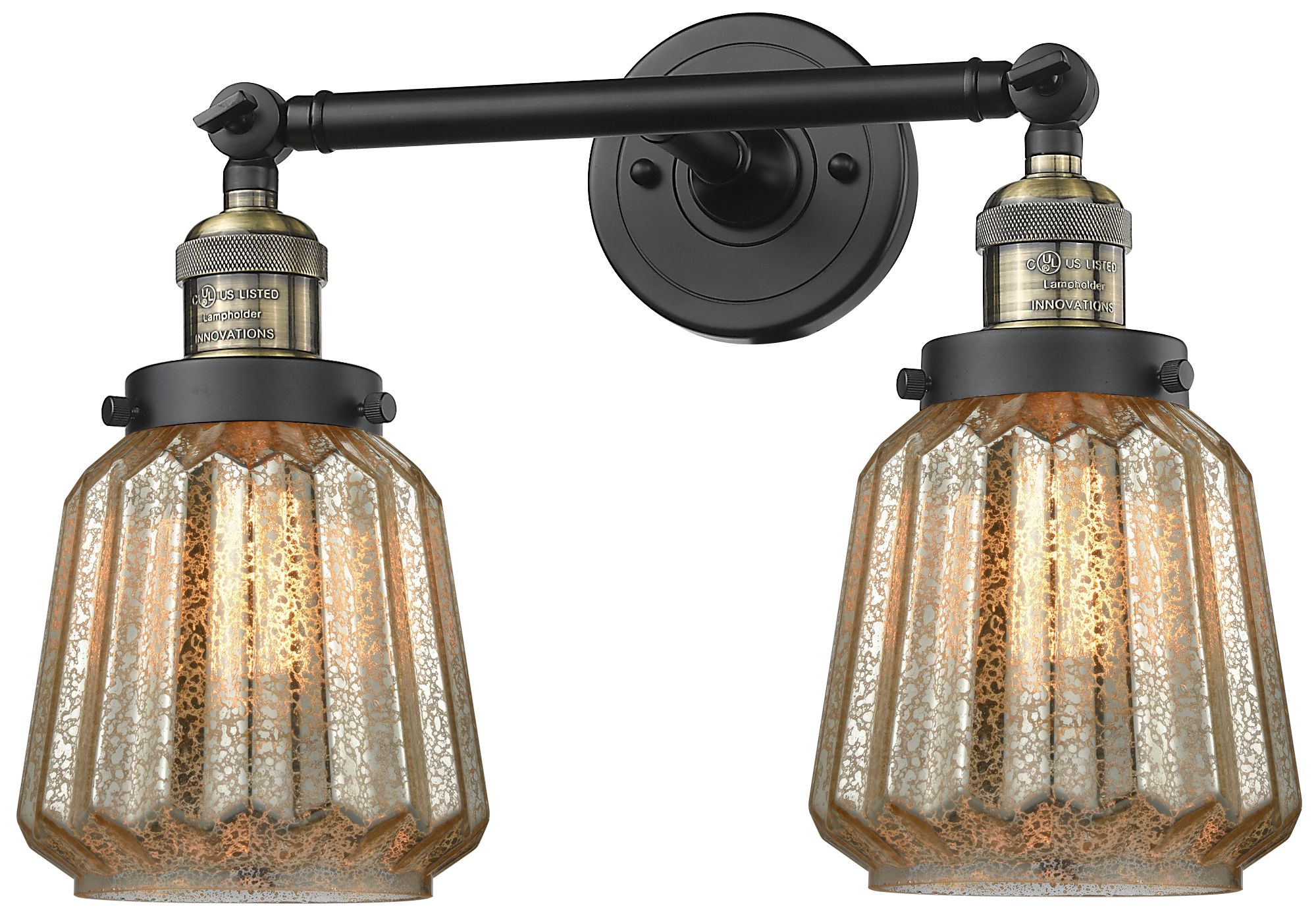 Chatham 16" Wide 2 Light Black Brass Bath Vanity Light w/ Mercury Shad