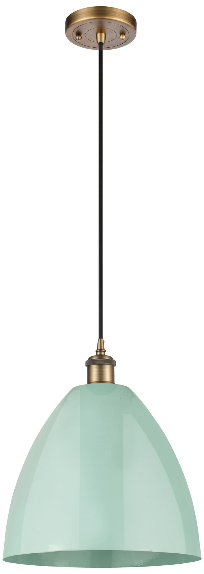Ballston Plymouth Dome 12"W Brushed Brass Corded Mini Pendant Seafoam