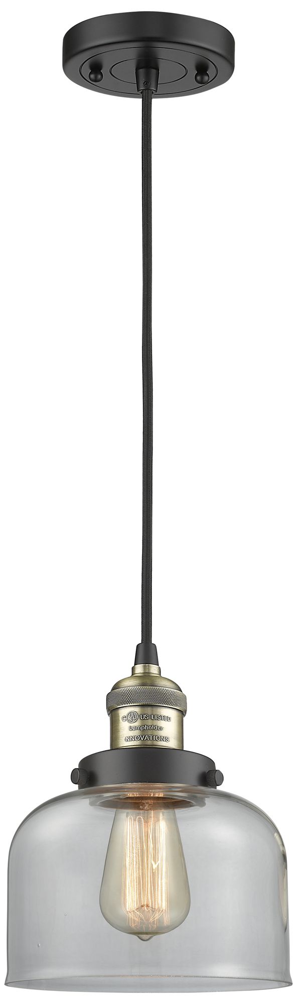 Franklin Restoration Bell 8" Black Brass Corded Mini Pendant w/ Clear