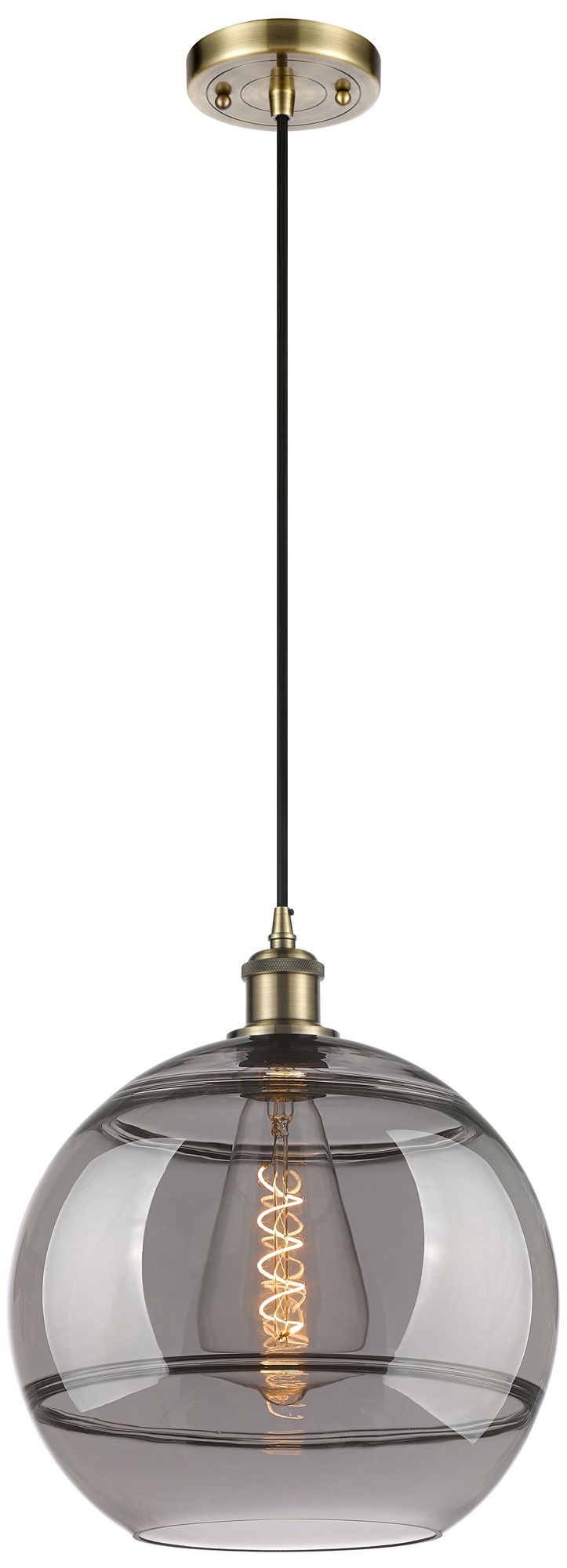 Ballston Rochester 12"W Antique Brass Corded Mini Pendant w/ Smoke Sha