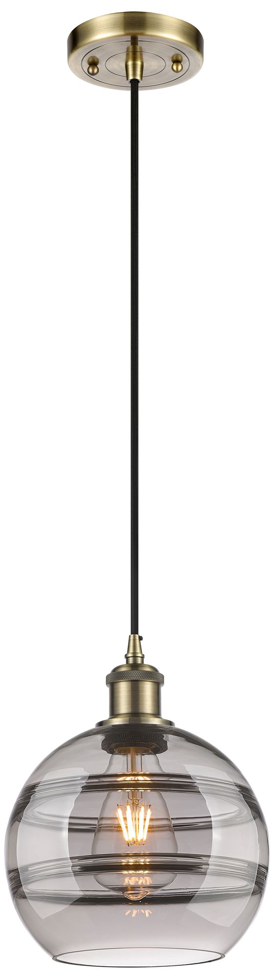 Ballston Rochester 8"W Antique Brass Corded Mini Pendant w/ Smoke Shad