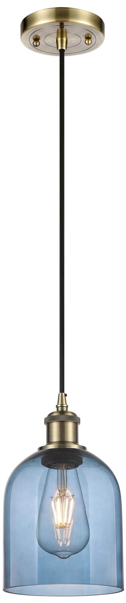 Ballston Bella 5.5"W Antique Brass Corded Mini Pendant w/ Blue Shade