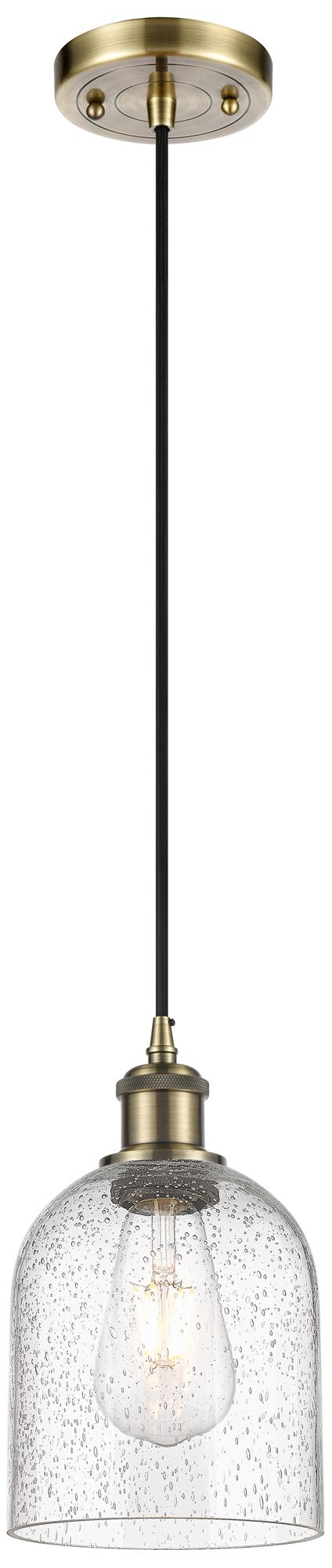 Ballston Bella 5.5" Wide Antique Brass Corded Mini Pendant w/ Seedy Sh