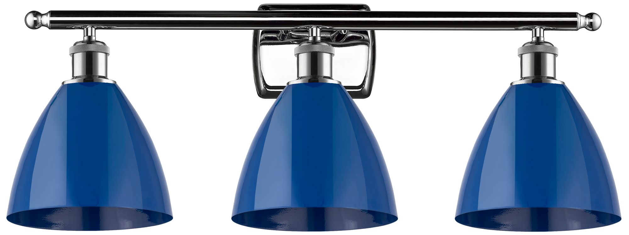Plymouth Dome 27.5"W 3 Light Polished Chrome Bath Light w/ Blue Shade