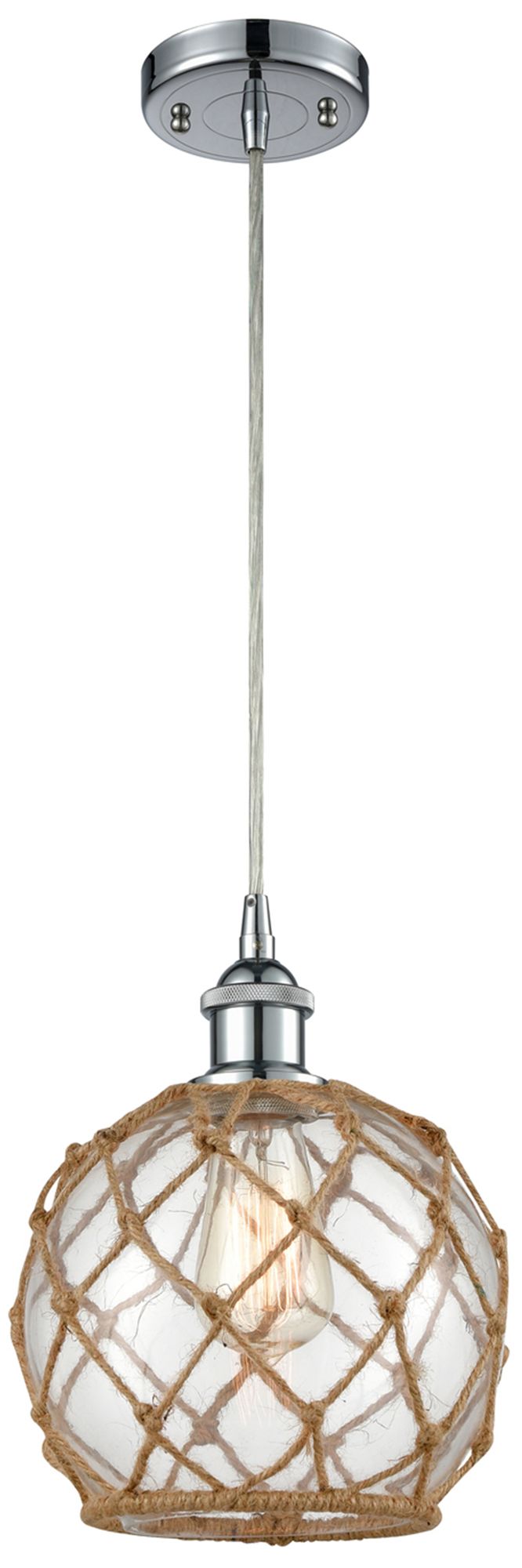 Farmhouse 8"W Cord Hung Chrome Mini Pendant w/ Clear and Brown Shade