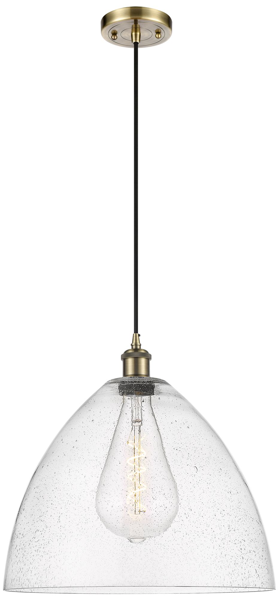 Ballston Bristol Glass 16" Antique Brass LED Pendant With Seedy Shade