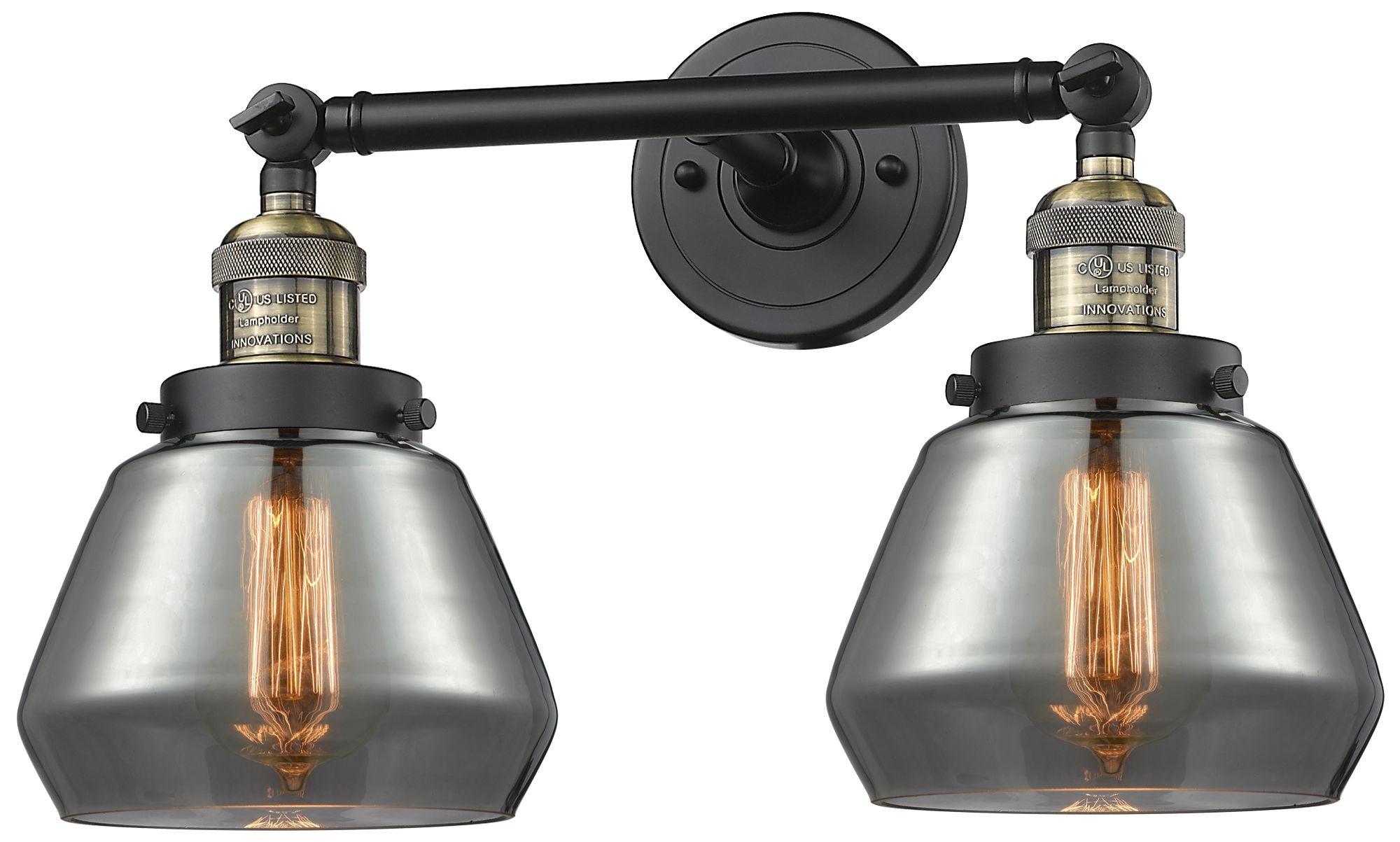 Fulton 16.5"W 2 Light Black Brass Bath Vanity Light w/ Plated Smoke Sh