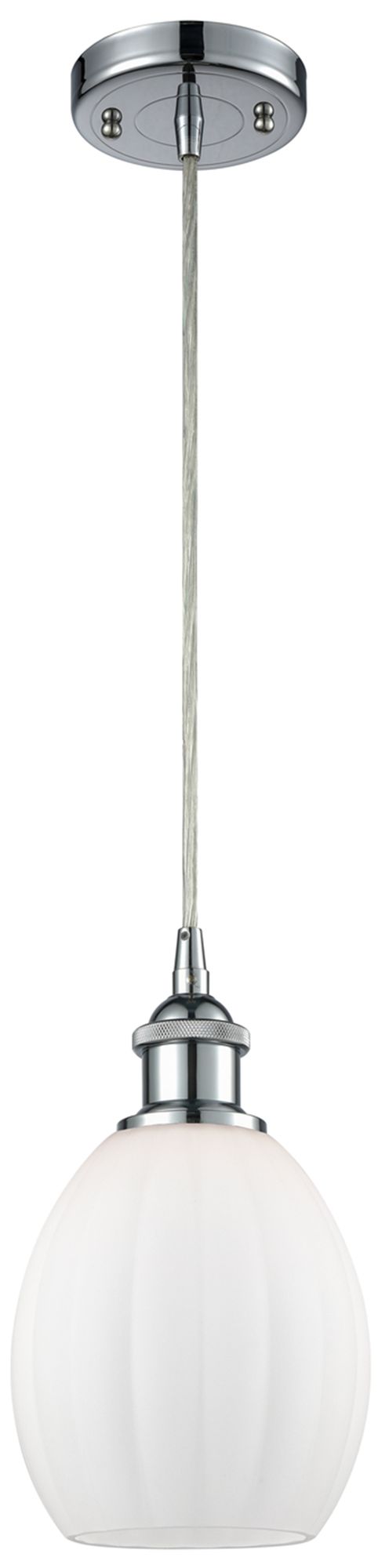 Eaton 6" Polished Chrome Cord Hung Mini Pendant w/ Matte White Shade