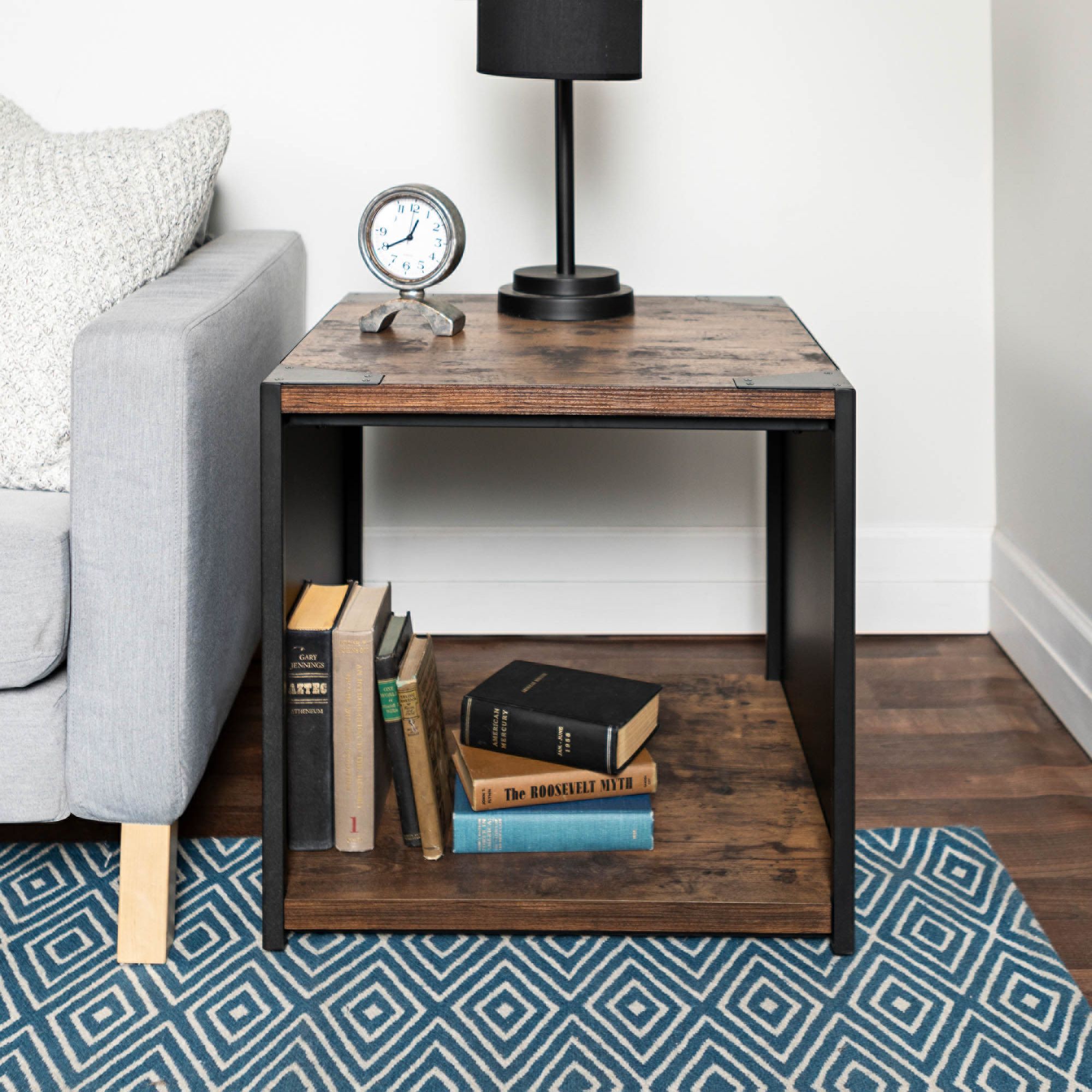 Webster 24" Wide Brown Wood and Steel Plate Side Table
