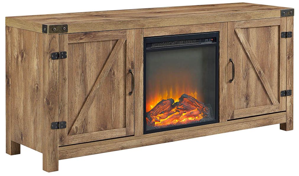 Barn Door 58" Wide Farmhouse Media TV Stand with Fireplace